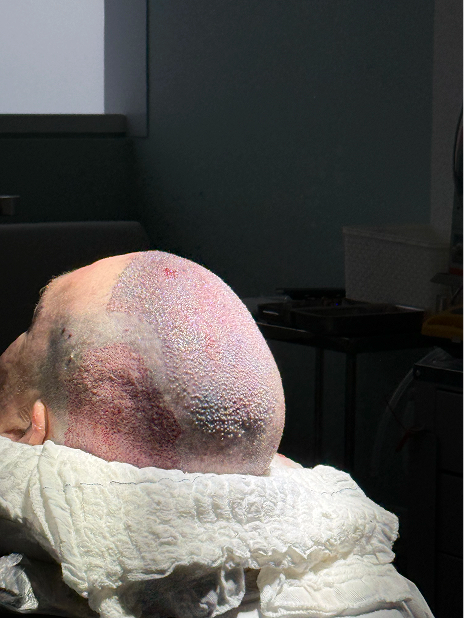 1º dia pós cirurgia: remoção de curativo e higienização no SPA Capilar da Clínica Audra.