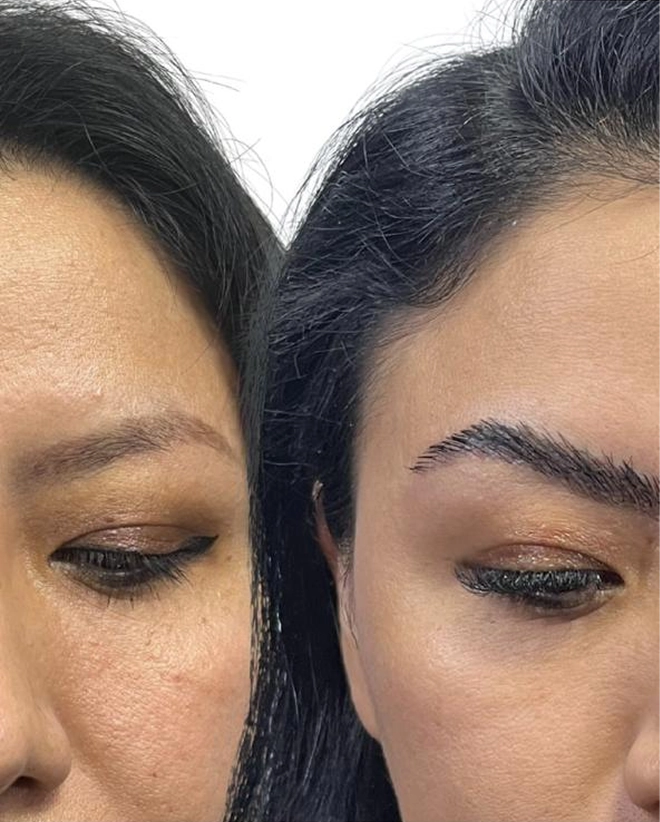Cada folículo é então lapidado individualmente e transplantado na sobrancelha, respeitando a direção natural dos fios.